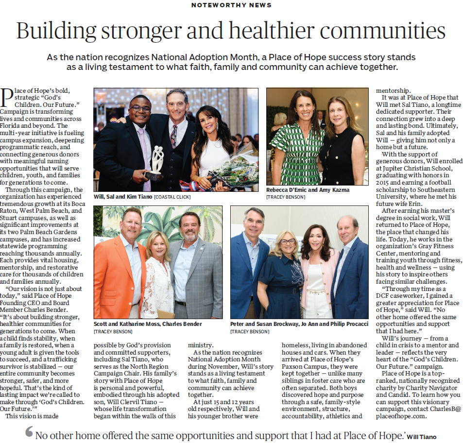 TBS has announced this year’s community service partnership with Place of Hope! Each year, Benjamin selects a local organization to support through a year-long service initiative.