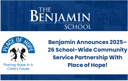 “Concern for others and a commitment to serve society have always been integral to Benjamin’s mission and culture,” Director of Student Services Student Poncy. “Partnering with Place of Hope allows our students and families to live out those values in a meaningful way.”