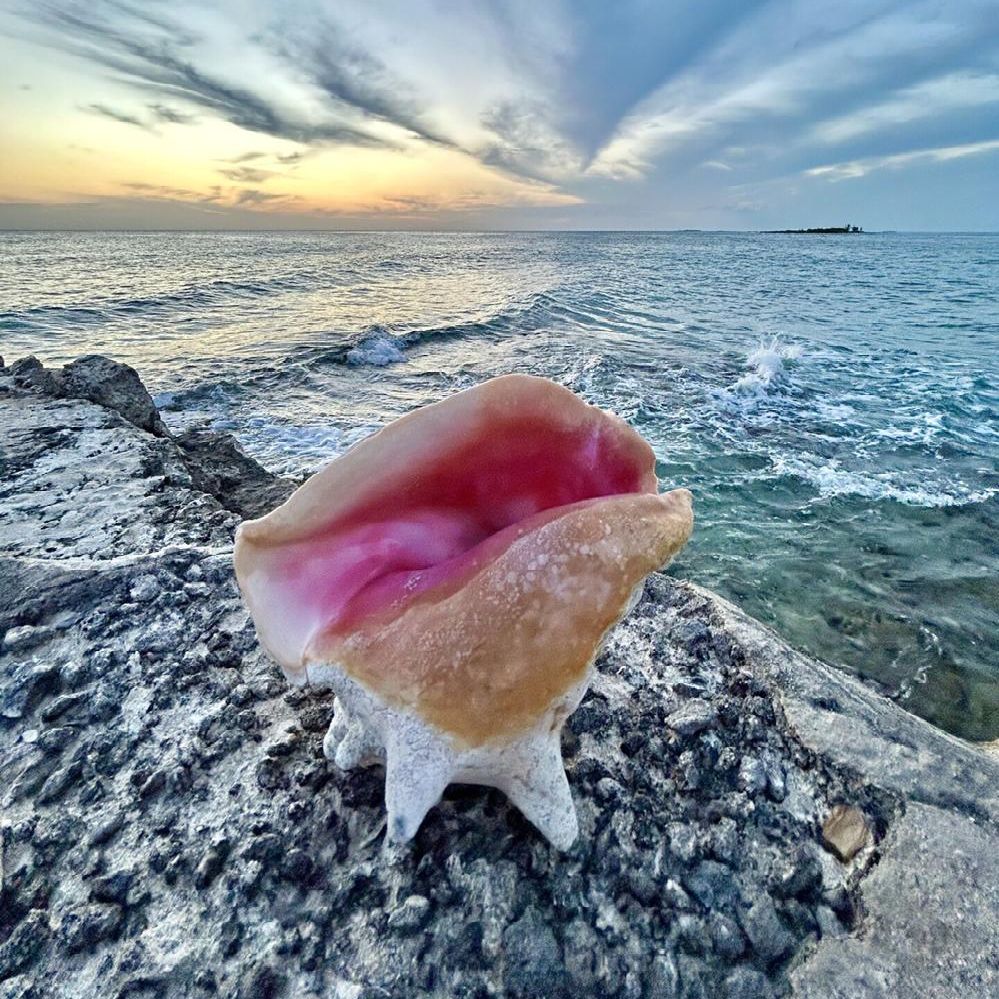 · Conch Sunset, photography by Megan Davis, Ph.D., research professor and director of the Queen Conch Lab.