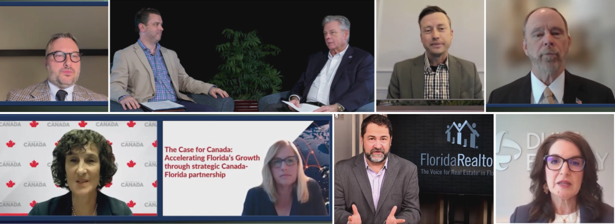 Bottom, From Left to Right: Linda Buaquina, Consul and Head of the Political and Economic Affairs at the Consulate General of Miami, Sylvia Cesaratto, Consul General of Canada in Miami, Dr. Brad O'Connor, Chief Economist, Florida Realtors, and Melissa Seixas, President, Duke Energy Florida |